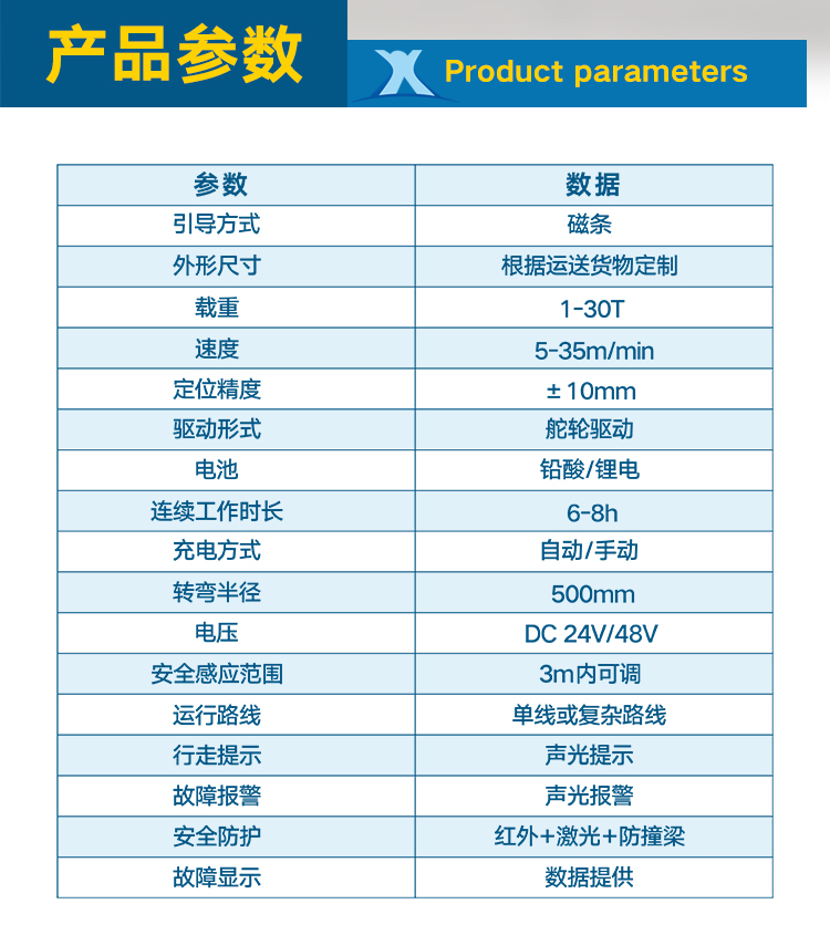 AGV重載磁條引導平車是一種以電池作為電源,舵輪作為驅動系統,磁條作為輔助,其運行不受限制,可以根據需求自動化對位,輥輪傳送,頂升,臺面旋轉等功能,載重能力1-30噸
