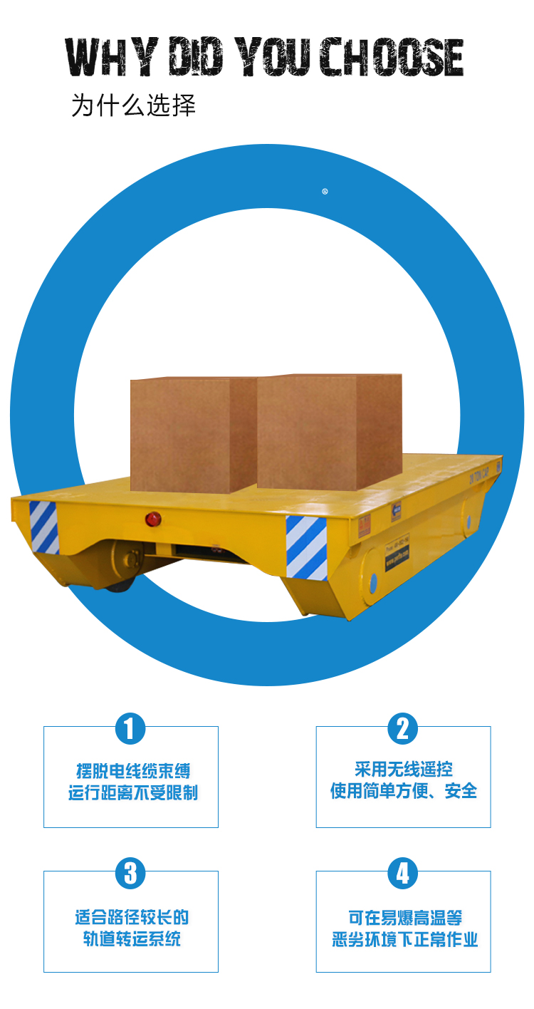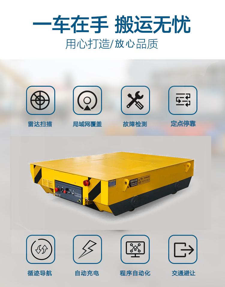 RGV軌道車主要由車身、導軌、傳動系統(tǒng)和控制系統(tǒng)等部分組成。車身是RGV軌道車的主體,由鋼材制成,具有足夠的強度和剛性。導軌是固定在地面上的金屬軌道,用于引導RGV軌道車行駛的方向。傳動系統(tǒng)由電機、減速機和鏈條組成,通過電機驅(qū)動鏈條運轉(zhuǎn),從而帶動RGV軌道車的運動。控制系統(tǒng)則是整個RGV軌道車的大腦,負責接收指令、處理信息,并控制軌道車的運行。