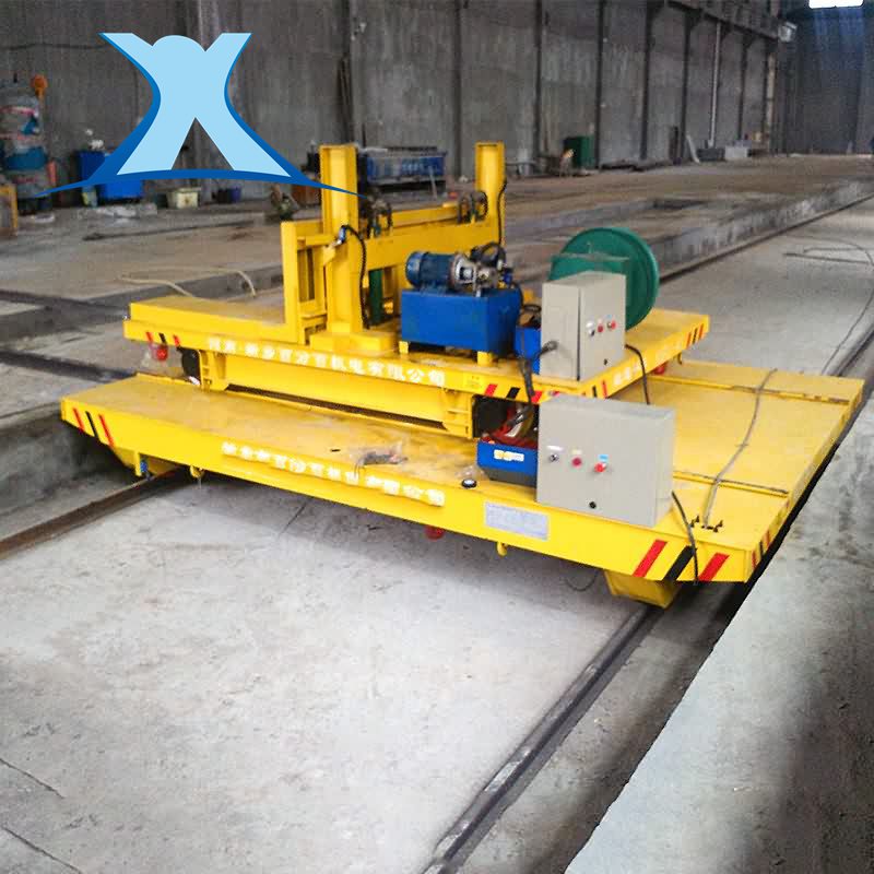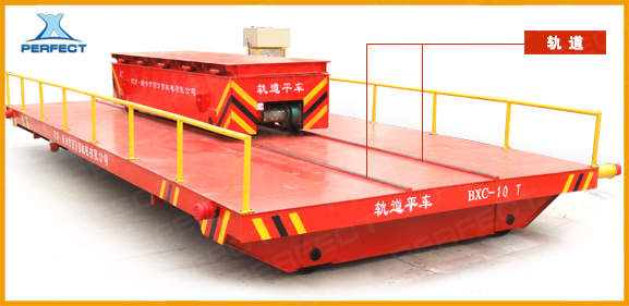 擺渡平車一般用于兩條或多條平行軌道之間的換軌,由上下兩層軌道平車疊加組成,地溝中行駛,臺面與地面平齊,且大車臺面上安裝有軌道,整車運行路線呈前后布置,大車橫向快速移動后能夠準(zhǔn)確的停止、定位和接軌,小車在大車臺面軌道上呈縱向路線運行,實現(xiàn)小車換軌換位功能。擺渡式軌道平車不僅僅只是兩層,還可根據(jù)情況設(shè)計為三層或多層。